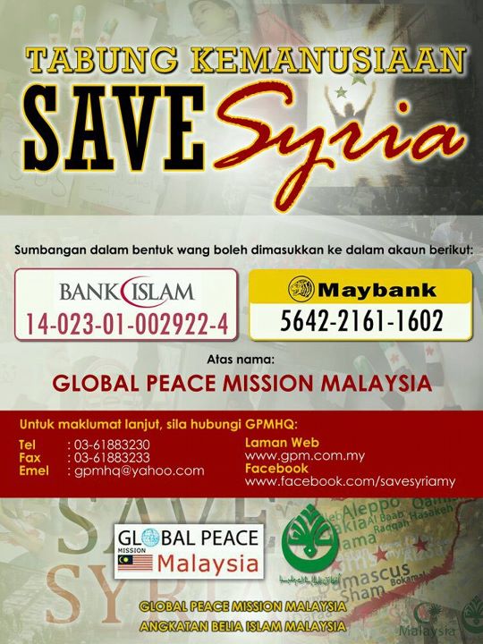 Sampai bertemu lagi. sebelum itu,mari bersama doakan saudara muslim kita di Syria,Palestin..Jom hulurkan sedikit sumbangan tanda kasih sayang kita... Dan jangan pernah lupa doakan bersama! InsyaAllah...